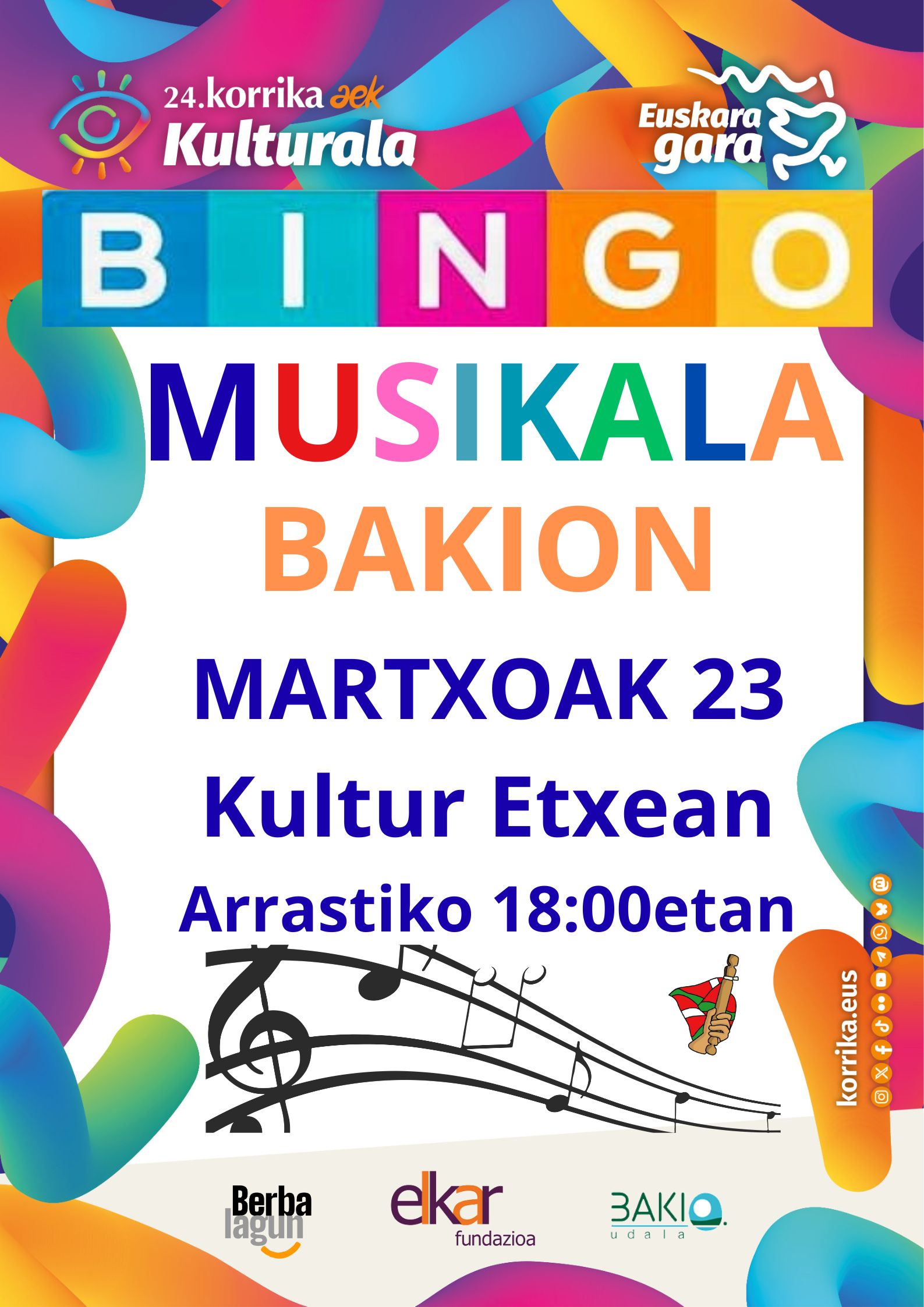Euskal musika eta kantak gustuko dituzu?? Horrela bada, Bakioko Berbalagun egitasmoak, Korrika kulturalaren baitan, abestiak, jolasak eta une dibertigarriak bizitzera gonbidatzen zaitu. NOIZ: Martxoak 23…