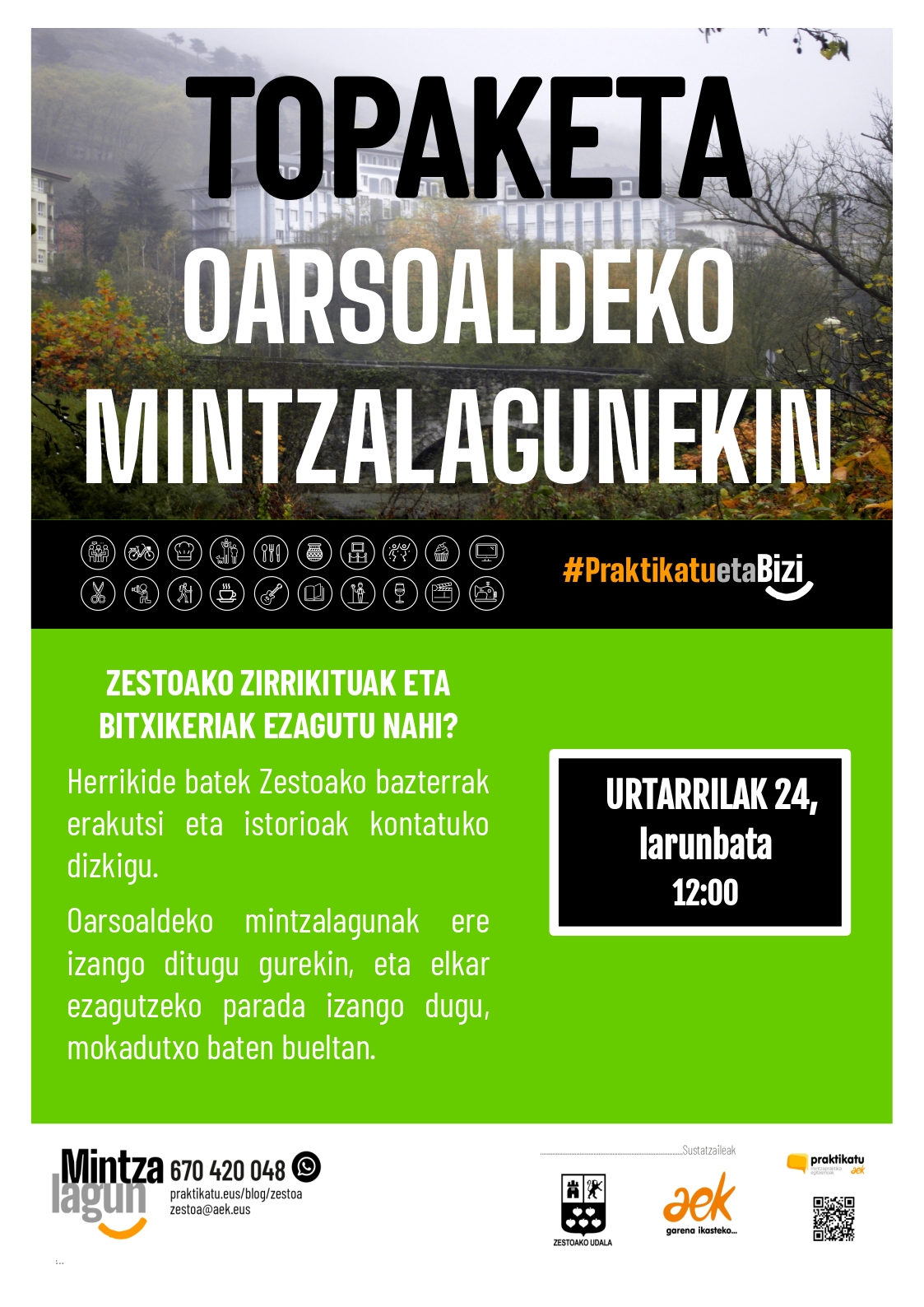 Datorren larunbatean, urtarrilaren 24ean, Oarsoaldeko mintzalagunak gerturatuko zaizkigu Zestoara. Goizez Ekainberri bisitatuko dute, eta, horren ostean, gurekin elkartuko dira eguerdi aldera. Ez dugu elkar ezagutuko…